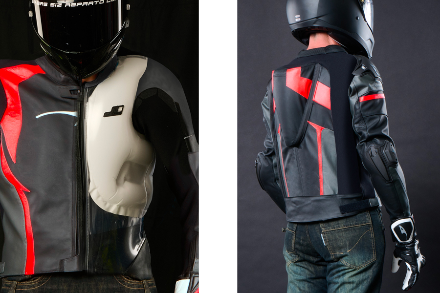 Stretch Kit and Airbag Compatibility (Optional) Upon request, it is possible to incorporate multi-layered stretch sections made of leather with adaptive pre-tensioning that allow for the expansion of internal electronic airbag vests (and others), while ensuring high comfort, a perfect fit of the garment, and an elevated level of safety.